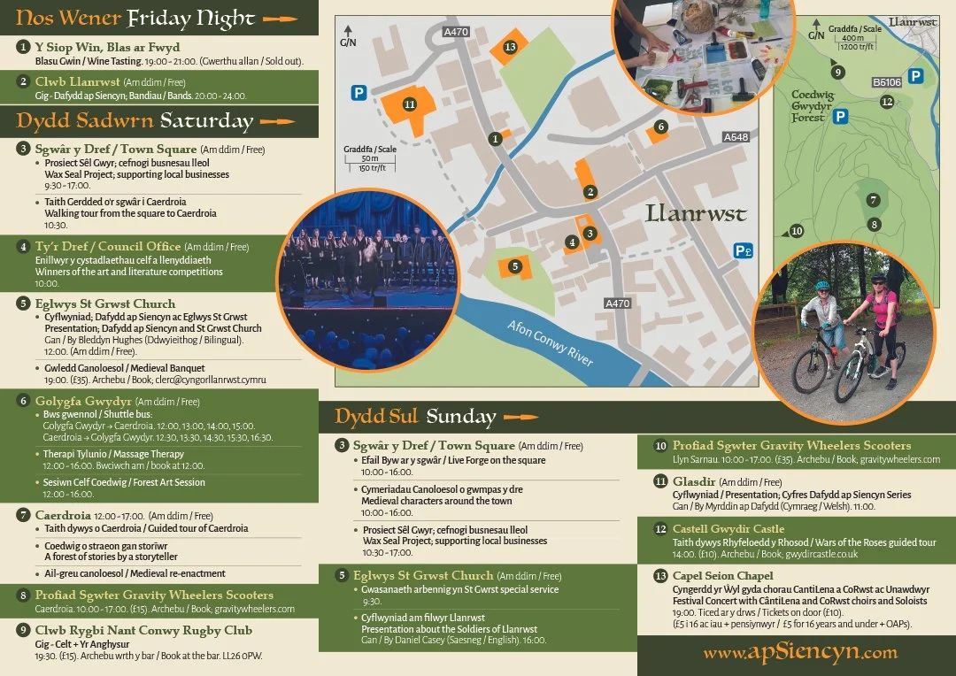 Llanrwst Town Council are delighted to invite you to follow in the footsteps of this colourful and successful rebel, in a festival which celebrates the people, nature, culture and history of our proud community. From medieval re-enactments to choirs of merrymen, here is an adventurous weekend scheduled for you.